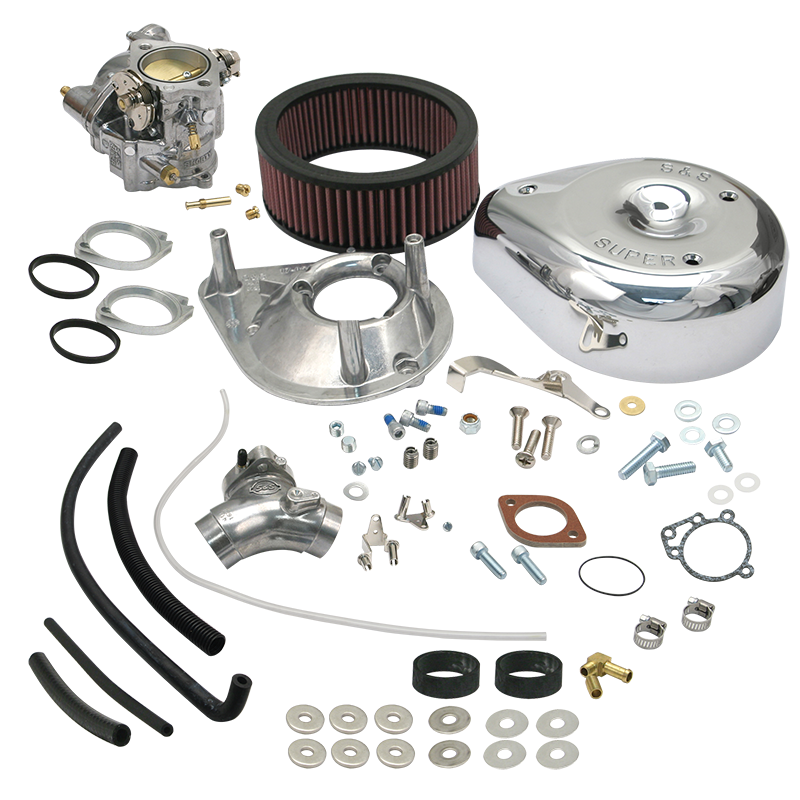 The complete S&S Super E carburetor kit contain everything you need for a complete installation on 1984-'92 big twin models with standard tanks. This kit includes a manifold for engines with stock length cylinders. 1-7/8 Inch bore.
