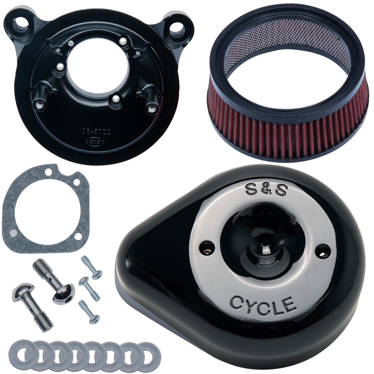 Air Cleaner, Kit, Super E/G, Stealth, w/ S&S® Teardrop, Gloss Black, 1984-'99 bt