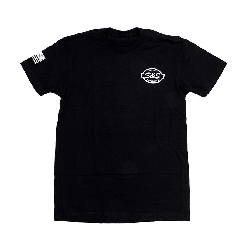 Embrace the namesake of S&S Cycle, with the Smith & Smith T-Shirt. This shirt features the Smith & Smith design and a tribute to the Teardrop Air Cleaner on the back, a single color flag print on the sleve, and a single color S&S Cycle logo printed on the front chest.